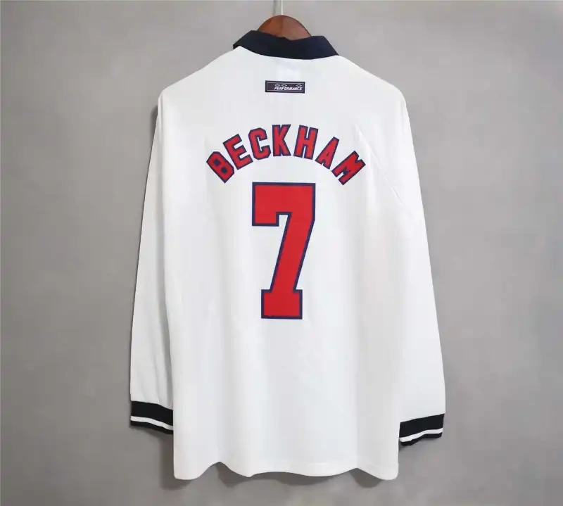 1998 England World Cup Home Retro Jersey Long Sleeve #7 BACKHAM #20 OWEN